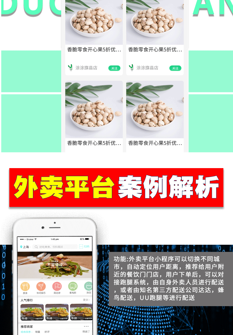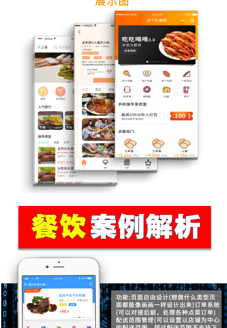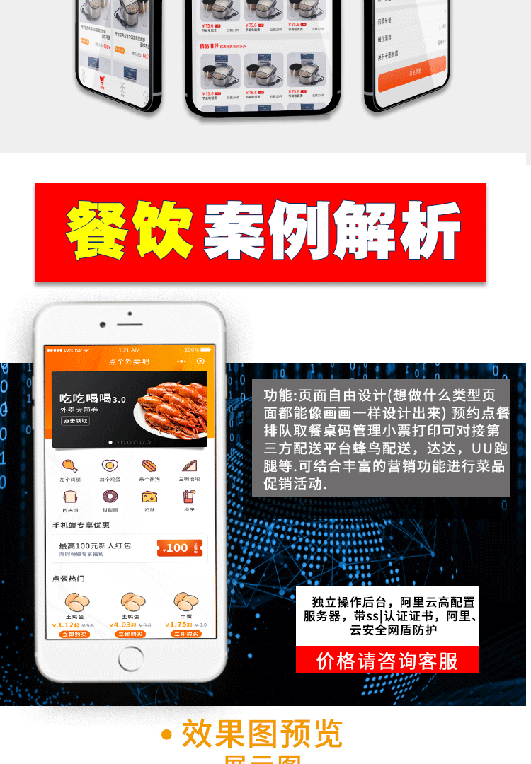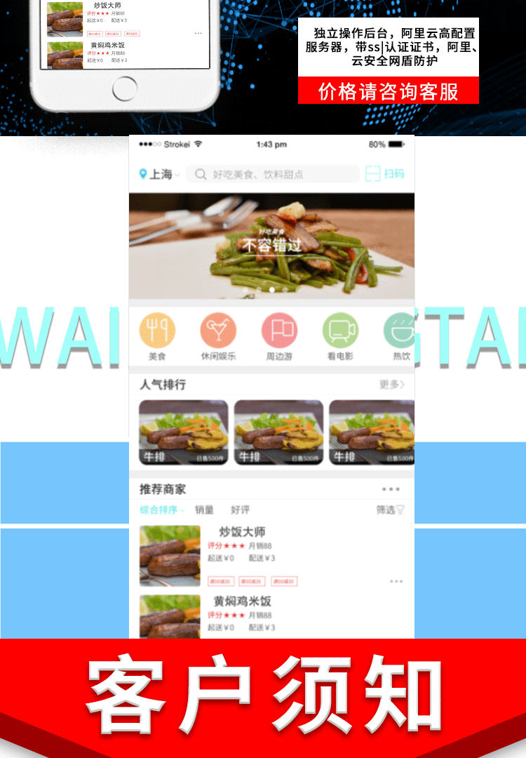 餐饮小程序是我们对餐饮行业推出的一套完整的餐饮解决方案。是一个非常强大的餐饮管理系统,通过深挖餐饮行业的特性,实现了用户在线点餐下单、外卖、叫号排队、支付、配送等功能,完美地解决了餐饮行业诸多痛点:没流量、翻台率低、二次消费率低、运营效率低等问题。