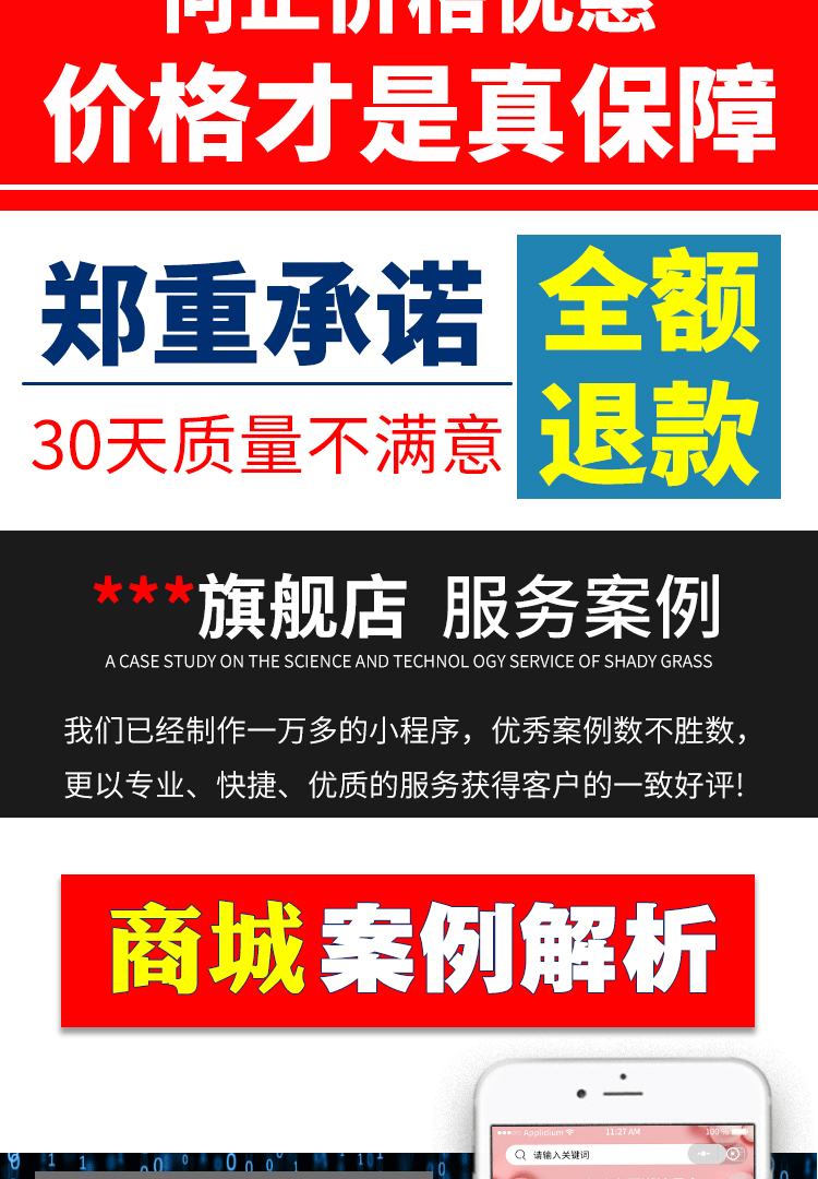 4、支付的小程序制作费用支持 365天无理由退款 增值服务因为涉及大量的人力物力不可回收成本,因此不支持退款(制作前,请充分了解小程序制作流程)